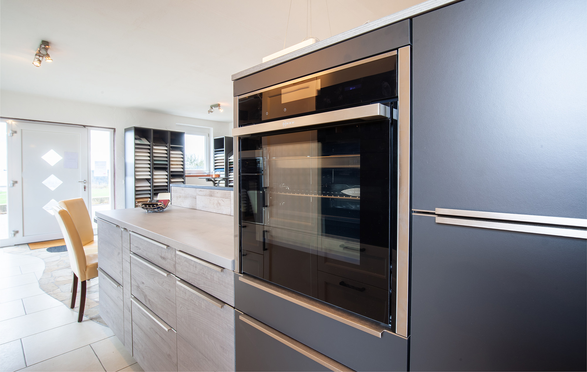 Besuchen Sie uns in unserer Ausstellung. Bei einem persönlichen Beratungstermin planen wir gemeinsam ganz nach Ihren Vorstellungen und Wünschen Ihre neue Küche. Neben der Planung Ihrer einzigartigen Küche bieten wir Ihnen auch die fachgerechte Montage aus unserem Schreinerei-Meisterbetrieb.